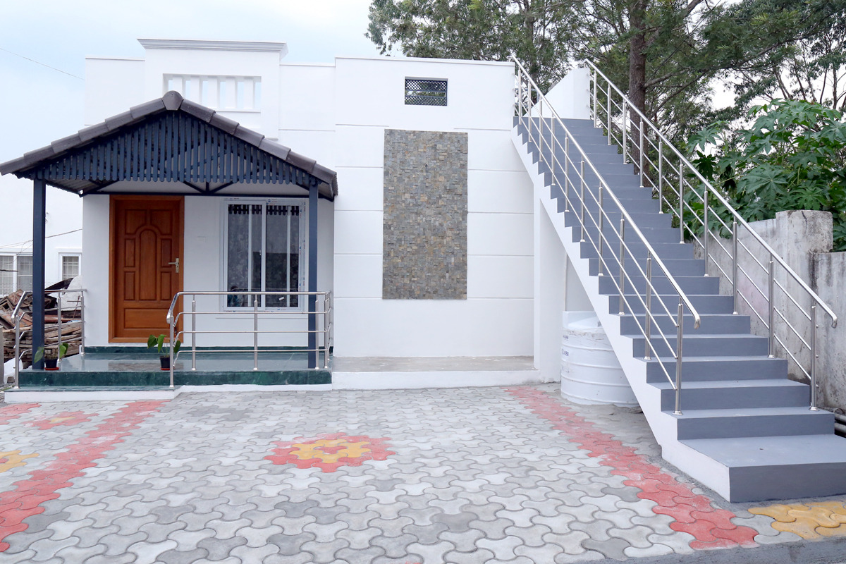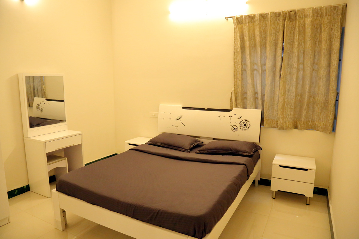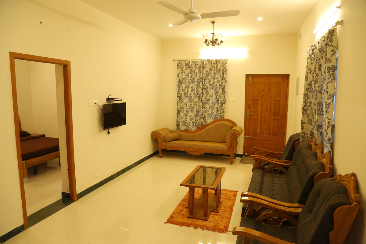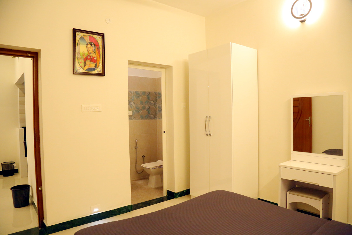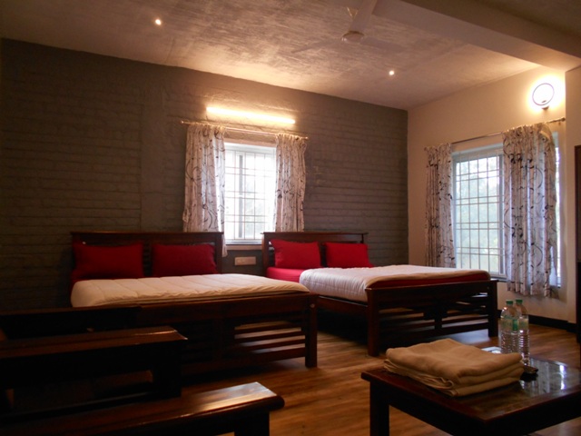 It has a hall,double bed-room with 2 double cot beds, pillows and mattress, a sofa set. It is ideal for huge families, group of friends. Each bedrooms have attached bathrooms. Its a Indivudual cottage with private sit out and open terrace.
