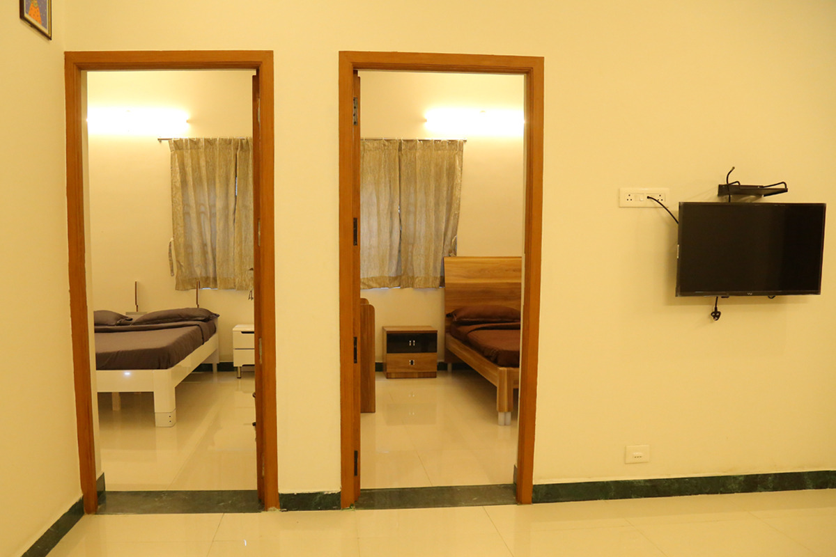 It is a 20*16 sq.feet hall also suitable for couples’ stay for small families. It has a double cot bed with pillows and mattress along with a sofa set. And also one single cot with mattresses available. Enjoy the convenience of a private ensuite bathroom, equipped with essential toiletries and fresh towels. Stay connected with […]
